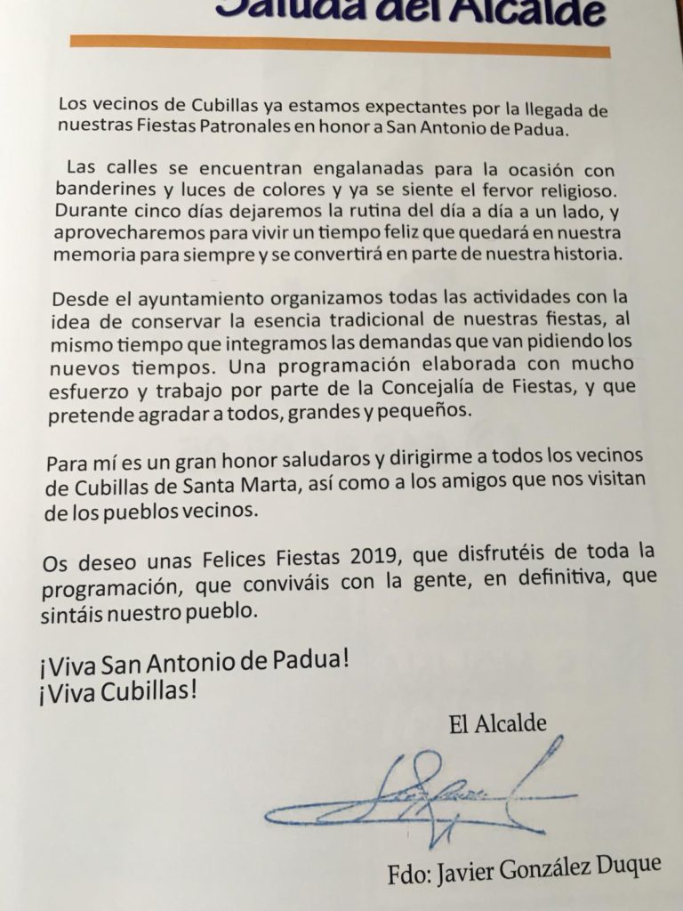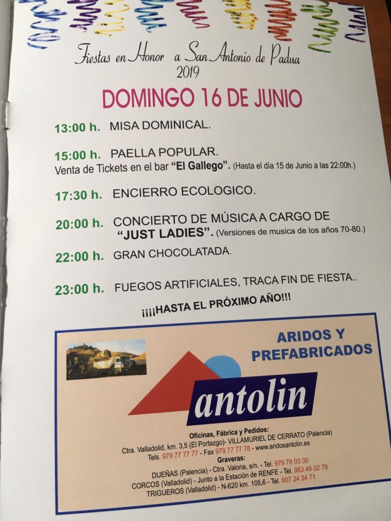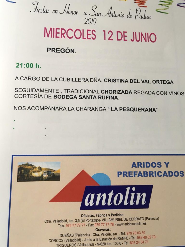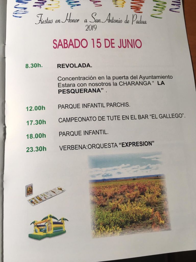 Del 12 al 16 de junio de 2019 se celebran las Fiestas de San Antonio de Padua con diversas actividades para los lugareños y visitantes