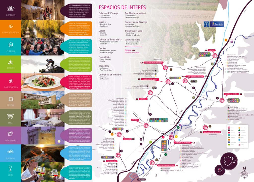 1. Los productos están divididos en categorías con información concreta: Bodegas, Canal de Castilla, Cultura, Deporte, Gastronomía, GR-296, MICE, Patrimonio, Pisuerga y Vino.